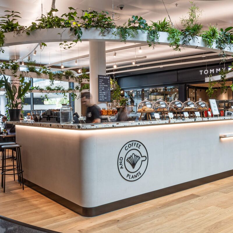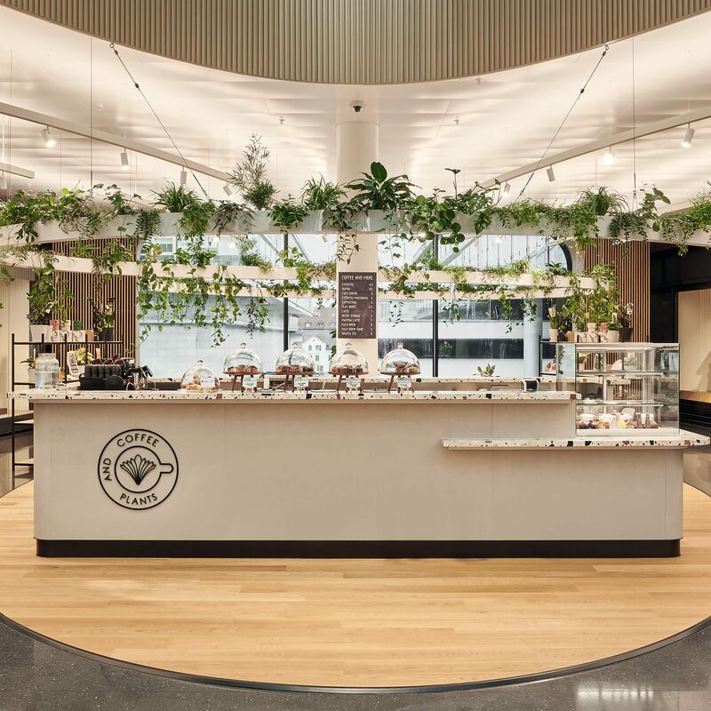 «Coffee and Plants» ist die Kombination aus einer Café Bar und einem Topfpflanzen-Shop. Eine grüne Wohlfühloase im Sihlcity (2. OG), gestaltet mit Pflanzen und Naturmaterialien.