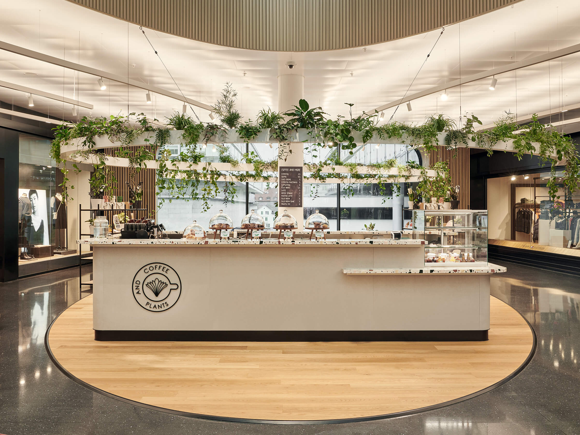 «Coffee and Plants» ist die Kombination aus einer Café Bar und einem Topfpflanzen-Shop. Eine grüne Wohlfühloase im Sihlcity (2. OG), gestaltet mit Pflanzen und Naturmaterialien.